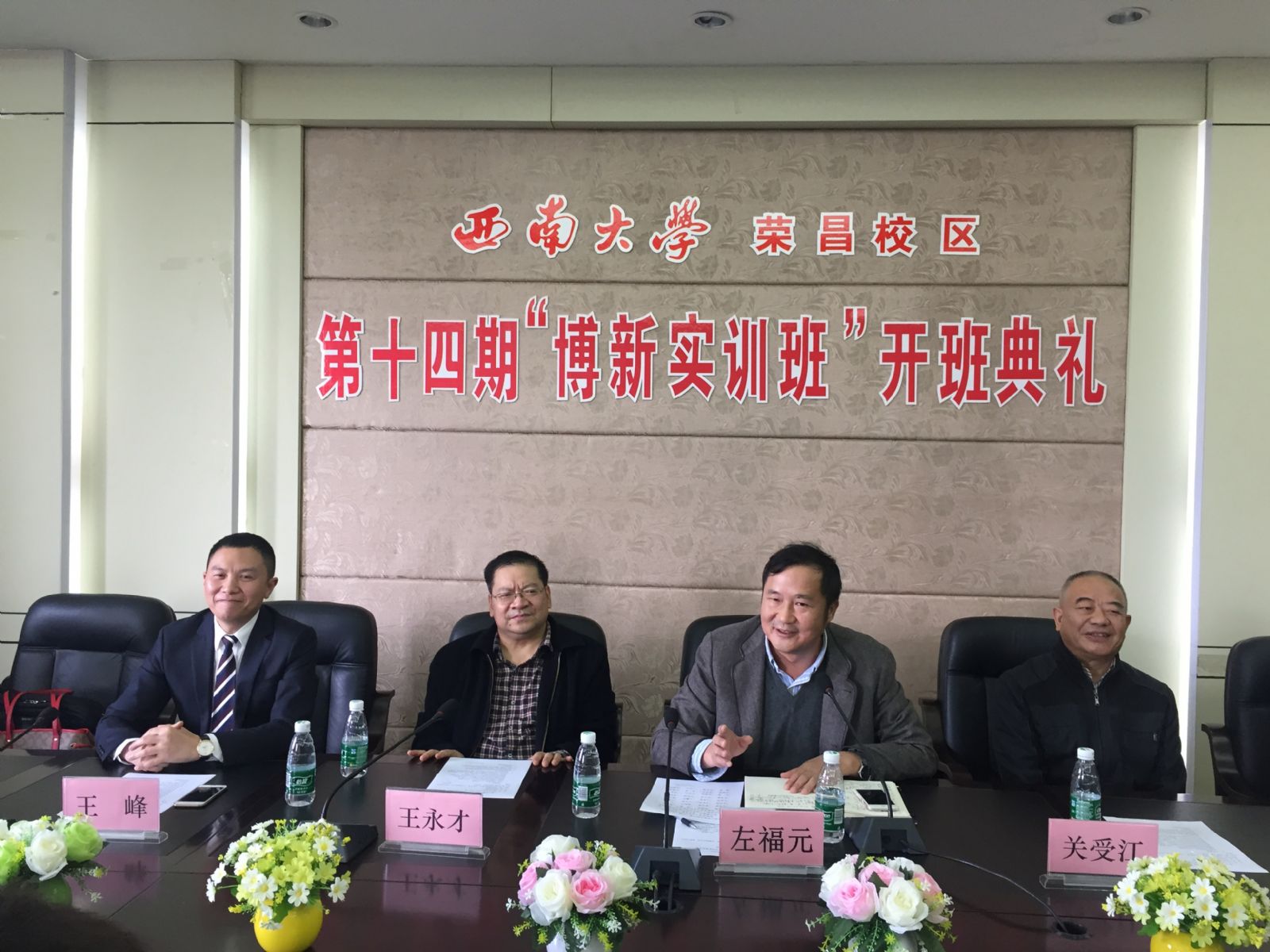 2017年10月27日,思來總經(jīng)理王峰先生受邀出席西南大學榮昌校區(qū)第十四期“博新實訓班”開學典禮,并作為特邀嘉賓在典禮上致辭。